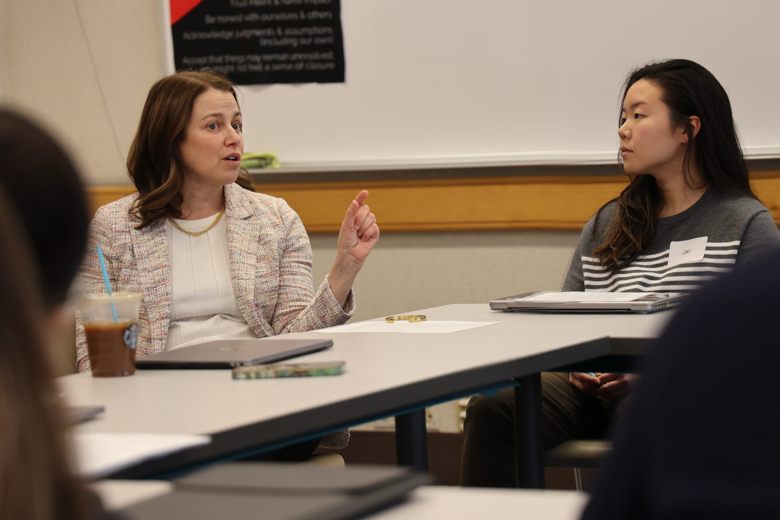 Recent news might lead us to believe that any college class about political conversations would either be contentious or silent. The key was establishing from the outset a common purpose for political dialogue: mutual understanding about the issues and each other. In addition, Jazlin introduced clear community expectations as well as some concrete skills for communication across differences.
